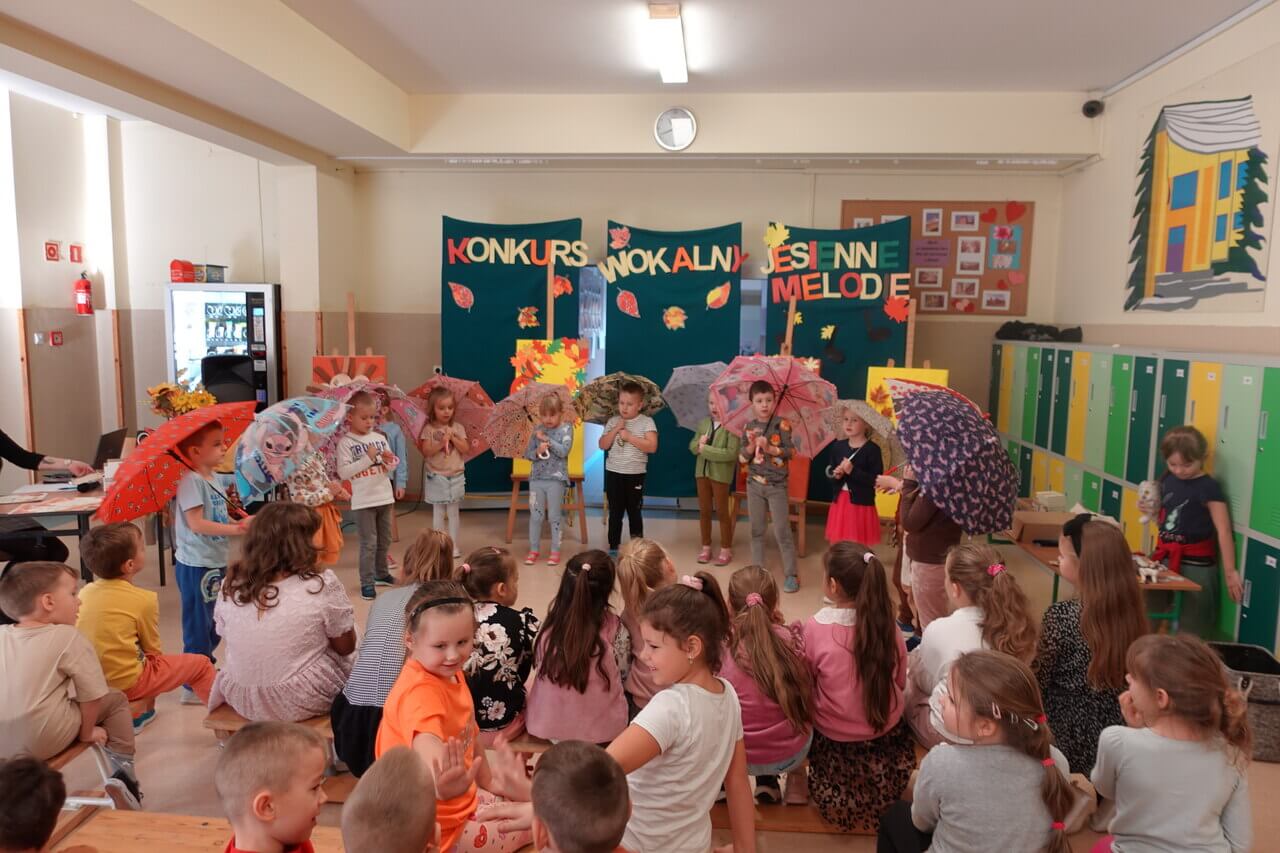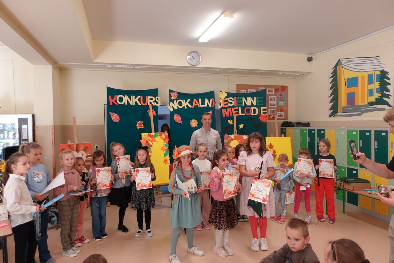 „Idzie, idzie jesień kolorowe liście niesie…” – 06 listopada br., chętni uczniowie z klas 0-III wzięli udział w konkursie wokalnym „Jesienne melodie”. Każdy uczestnik zaprezentował piosenkę o tematyce jesiennej. Poziom wokalny występujących był bardzo wysoki. Jury miało nie lada orzech do zgryzienia, przyznając główne nagrody. I miejsce zdobyła uczennica z klasy IIIb II miejsce przyznano uczennicy z klasy II a III miejsce przypadło uczennicy z klasy II b Przyznano również 4 wyróżnienia. Organizatorzy konkursu przygotowali dla każdego uczestnika dyplom i drobne upominki, które dostarczyło Nadleśnictwo Piotrków.