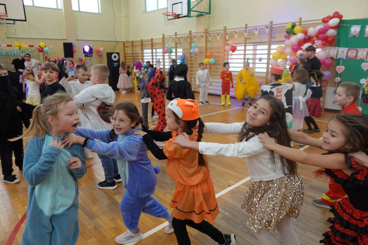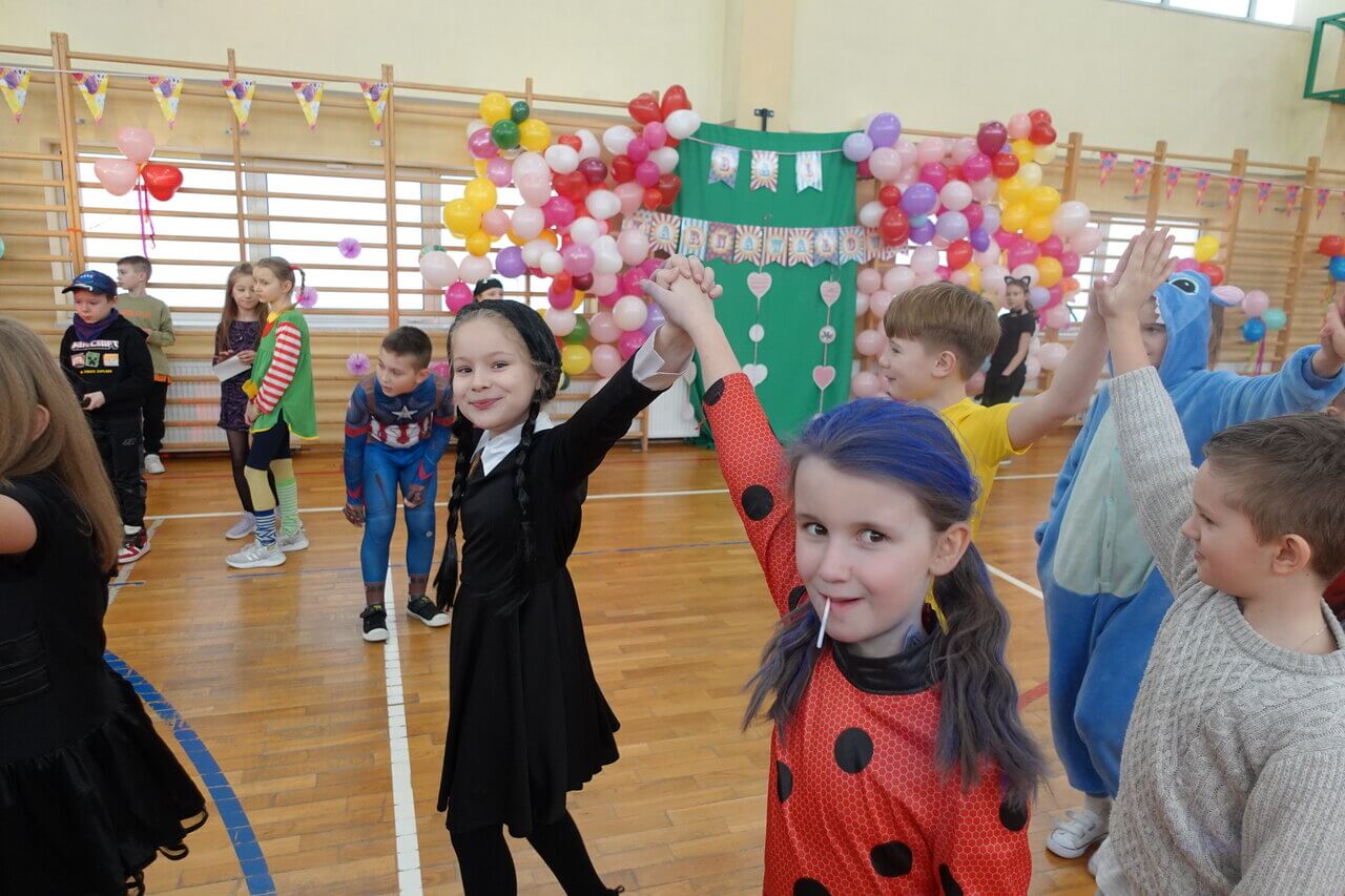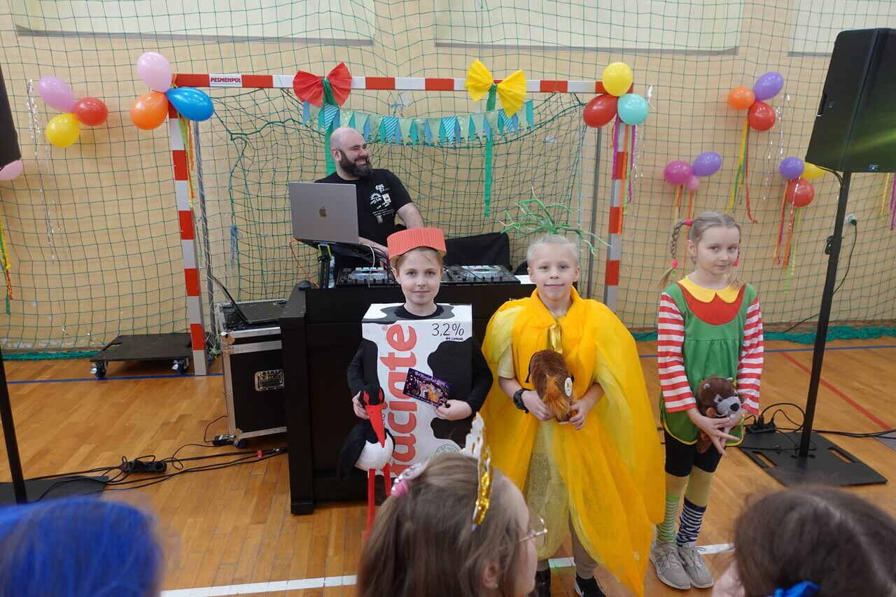 14.02. br., w godz. dopołudniowych, w naszej szkole odbył się bal karnawałowy dla uczniów z klas 0 - III. To wyjątkowe wydarzenie, na które uczniowie czekają z niecierpliwością, zostało zorganizowane przez Radę Rodziców naszej szkoły. Jako wodzirej, wystąpił pan Rafał, a o oprawę muzyczną zadbał DJ Jakub Gwiazda, natomiast kolorową dekorację sali wykonali nauczyciele z klas 0 - III. Pomysłowe stroje uczniów, świetna muzyka oraz szalone zabawy sprawiły, że ten ostatni dzień przed feriami zimowymi był dla dzieci, wyjątkowo mile spędzonym dniem. Na balu, nie tylko uczniowie świetnie się bawili, ale również wychowawcy, towarzyszący swoim podopiecznym w karnawałowych zabawach. Dzieciaki oprócz wspomnień mogły zabrać z imprezy zabawne zdjęcia wykonane w Fotobudce. Nie zabrakło także konkursu na najciekawszy strój karnawałowy. Bezapelacyjnie wygrał Tymek, który przebrał się za karton mleka. II miejsce zajął Henio, który „był” cebulą, a III miejsce przypadło Hani, która bawiła się w stroju Pippi Langstrumpf. Na zakończenie wszyscy zatańczyli do wybranego przez dzieciaki utworu „Sigma boy”.