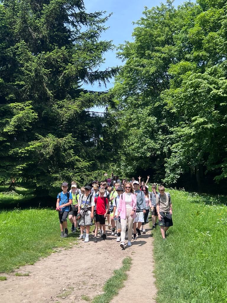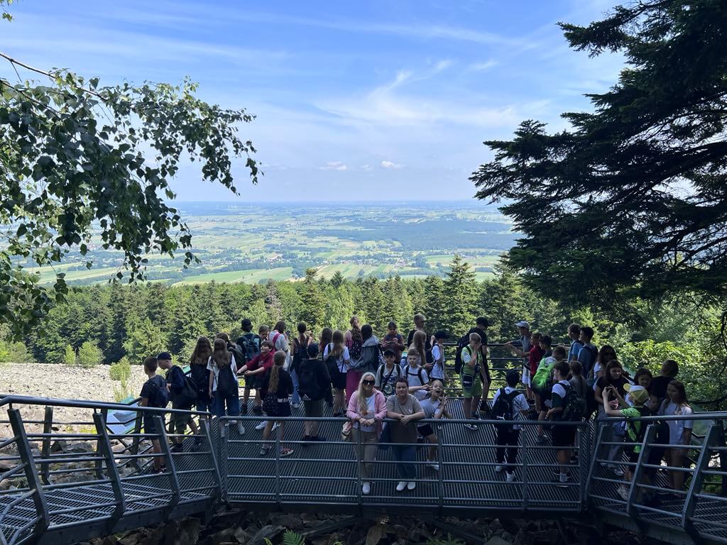 W środę, 18 czerwca br., o 7 rano uczniowie klas: V b, VI a i VI b wraz z opiekunami: A. Kobżyńską, K. Mikolajczyk, J. Piszczalską, J. Brzozowską wyruszyli na wycieczkę w Góry Świętokrzyskie. Zwiedzanie rozpoczęliśmy od spaceru Puszczą Jodłową na Święty Krzyż i podziwiania klasztoru założonego przez benedyktynów. Następnie udaliśmy się do Parku Legend leżącego u podnóża Łysej Góry, gdzie spotkaliśmy bohaterów świętokrzyskich opowieści oraz poznaliśmy bogatą historię i kulturę tego regionu. Nowoczesna technologia wprowadziła nas w świat czarów i magii. Udało nam się nawet polatać na miotle w okularach VR. Kolejna atrakcja czekała na nas w Muzeum Minerałów, gdzie zwiedzaliśmy wraz z przewodnikiem wystawę naturalnych kruszców, a później oglądaliśmy pokaz szlifowania kamieni szlachetnych. Dzień był wyczerpujący, ale pełen niezwykłych przeżyć.