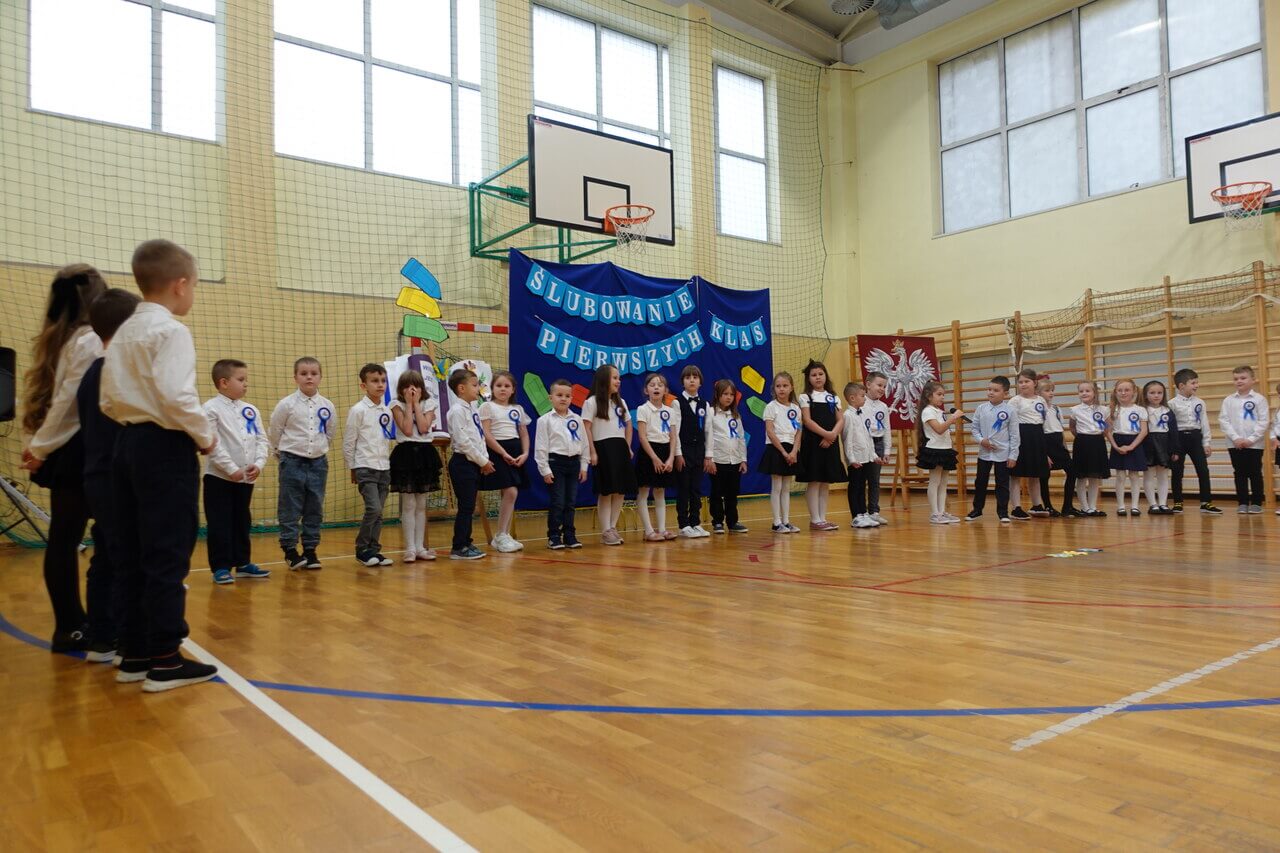Na uroczystość przybyli zaproszeni goście: Pani Burmistrz Dorota Jankowska, Dyrekcja naszej Szkoły, Przedstawiciele Rady Rodziców, rodzice uczniów klas pierwszych oraz delegacje starszych klas. Pierwszoklasiści zaprezentowali część artystyczną, udowadniając, że są gotowi do odkrywania szkolnego świata i podejmowania nowych wyzwań. Po uroczystym ślubowaniu Pan Dyrektor dokonał symbolicznego aktu pasowania. Zarówno Dyrekcja, jak i Pani Burmistrz złożyli życzenia pierwszoklasistom oraz pogratulowali Rodzicom wspaniałych pociech jednocześnie, życząc wytrwałości w dalszym wychowaniu.