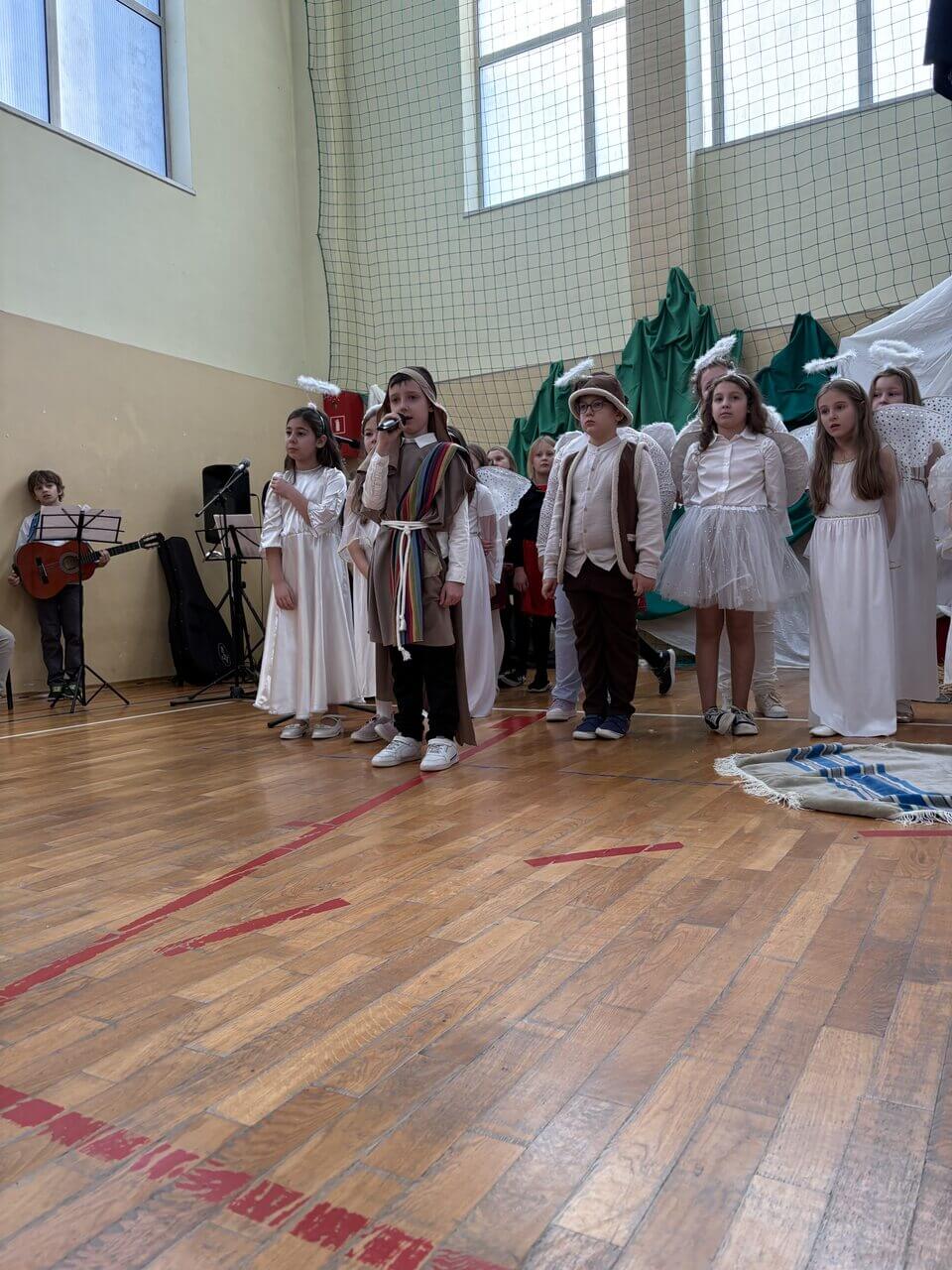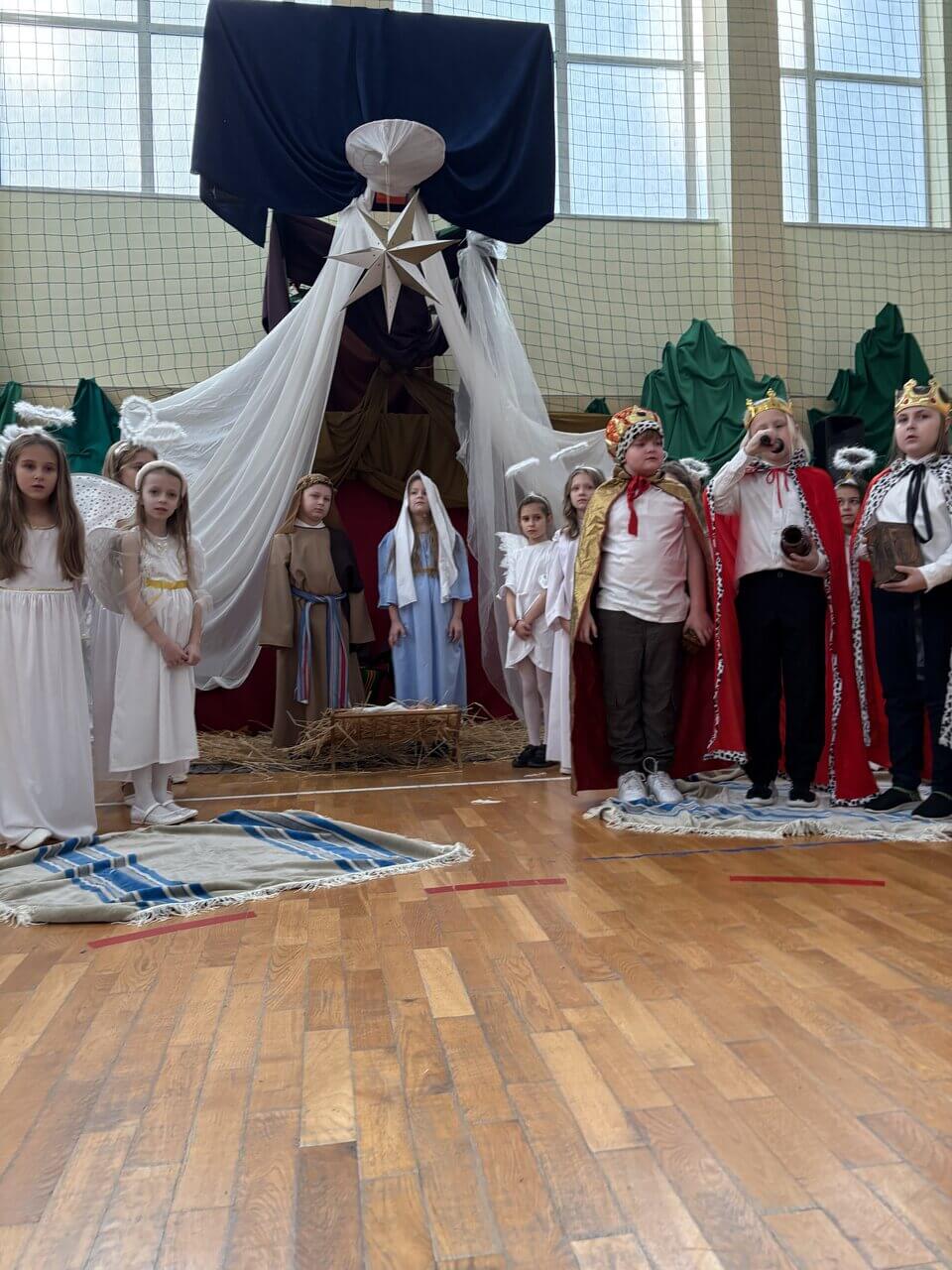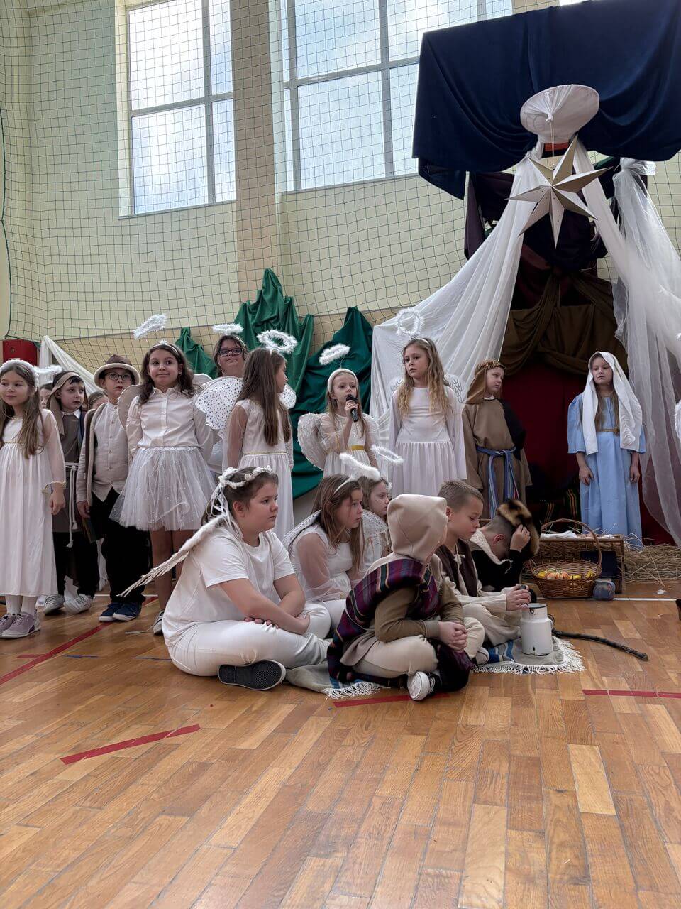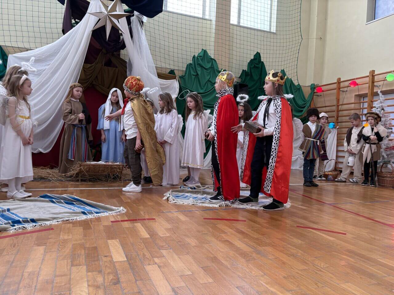 19 grudnia uczniowie naszej szkoły zgromadzili się, aby wspólnie przeżyć historię związaną z narodzinami Dzieciątka Jezus oraz złożyć życzenia na nadchodzące Święta Bożego Narodzenia i Nowy Rok. Świąteczne przedstawienie artystyczno-wokalne zaprezentowały dzieci z klas drugich oraz chór Pana Łukasza Miszteli. Po obejrzeniu jasełek odbyły się spotkania wigilijne z wychowawcami.