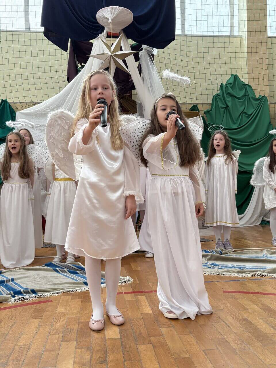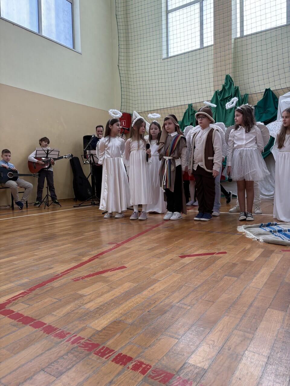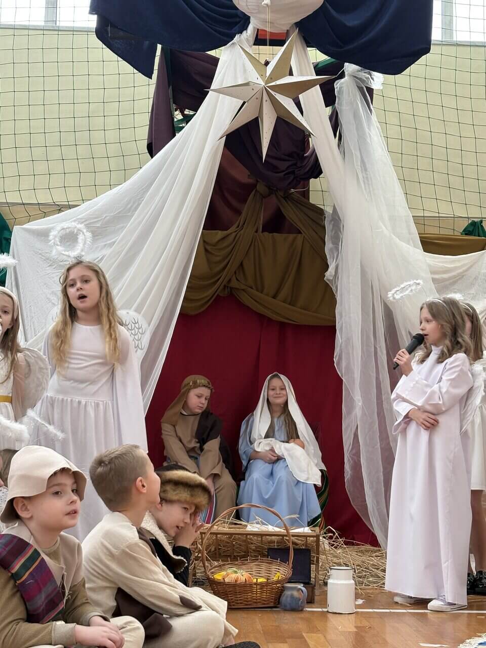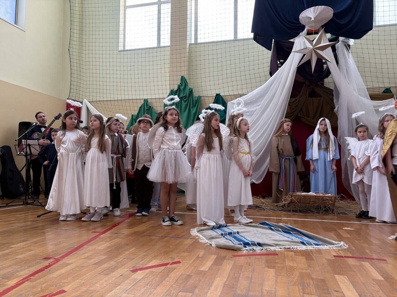 19 grudnia uczniowie naszej szkoły zgromadzili się, aby wspólnie przeżyć historię związaną z narodzinami Dzieciątka Jezus oraz złożyć życzenia na nadchodzące Święta Bożego Narodzenia i Nowy Rok. Świąteczne przedstawienie artystyczno-wokalne zaprezentowały dzieci z klas drugich oraz chór Pana Łukasza Miszteli. Po obejrzeniu jasełek odbyły się spotkania wigilijne z wychowawcami.